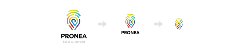 The original logo is composed of lines that have the same thickness as the gap between them. They thus form a triple, curved line, which refers to the original pillars of Pronea – Academy, Campus and Hub.